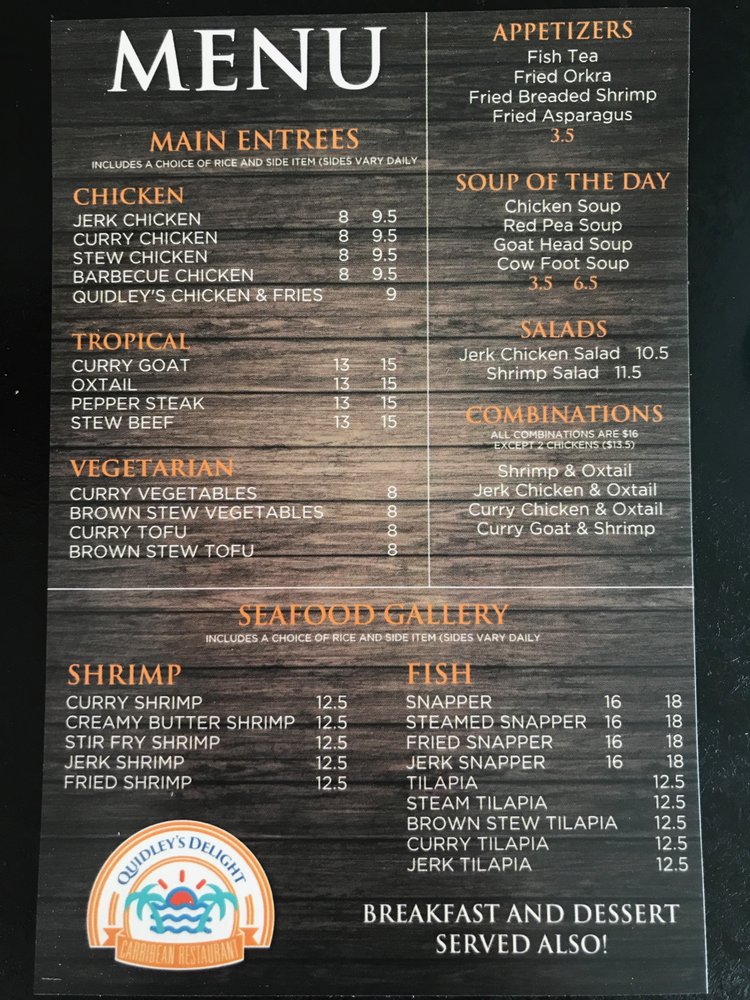 For reservations or inquiries, give them a call at (704) 910-1781. Let Quidleys Delight elevate your lunch or dinner experience and bring the taste of the islands to your table!